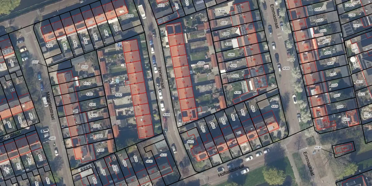 Irenestraat 13 is gelegen op kadastraal perceel PAK00C4086. Deze kadastrale aanduiding is uniek en wordt gebruikt door het Kadaster om eigendomsrechten en andere zakelijke rechten vast te leggen. Het perceel maakt onderdeel uit van de kadastrale gemeente Pijnacker.