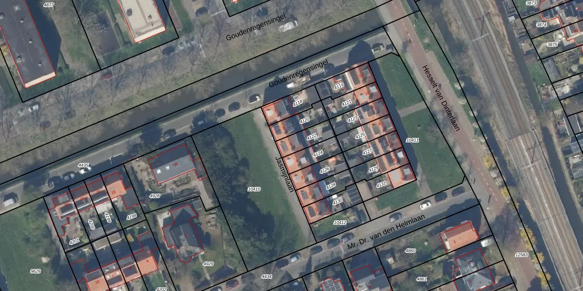 Gebruik de zoekbalk of klik op een perceel voor informatie over de adressen binnen dit perceel.