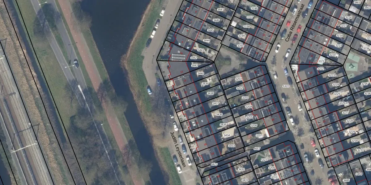 Judith Leysterlaan 13 is gelegen op kadastraal perceel PAK00B3439. Deze kadastrale aanduiding is uniek en wordt gebruikt door het Kadaster om eigendomsrechten en andere zakelijke rechten vast te leggen. Het perceel maakt onderdeel uit van de kadastrale gemeente Pijnacker.
