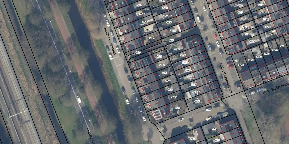 Judith Leysterlaan 21 is gelegen op kadastraal perceel PAK00B3431. Deze kadastrale aanduiding is uniek en wordt gebruikt door het Kadaster om eigendomsrechten en andere zakelijke rechten vast te leggen. Het perceel maakt onderdeel uit van de kadastrale gemeente Pijnacker.
