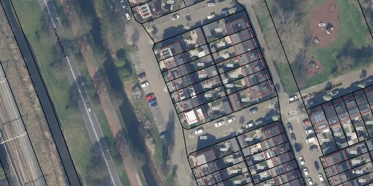Het adres is gelegen op perceel 3705 in de sectie B en de kadastrale gemeente Pijnacker. De kadastrale aanduiding is aldus PAK00-B-3705. Het perceel is 172 m² groot. Dat is kleiner dan de gemiddelde perceeloppervlakte in Pijnacker, dat op 1796,52 m² ligt. Het grootste perceel in de kadastrale gemeente is 20,5 ha. Het kleinste perceel heeft een oppervlakte van 0 m². Dit is het enige adres dat aanwezig is op het perceel. De huidige grenzen van het perceel zijn digitaal in de Basisregistratie Kadaster (BRK) geregistreerd op 13-07-2010.