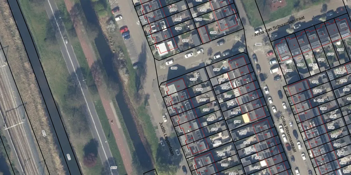 Judith Leysterlaan 34 is gelegen op kadastraal perceel PAK00B3715. Deze kadastrale aanduiding is uniek en wordt gebruikt door het Kadaster om eigendomsrechten en andere zakelijke rechten vast te leggen. Het perceel maakt onderdeel uit van de kadastrale gemeente Pijnacker.