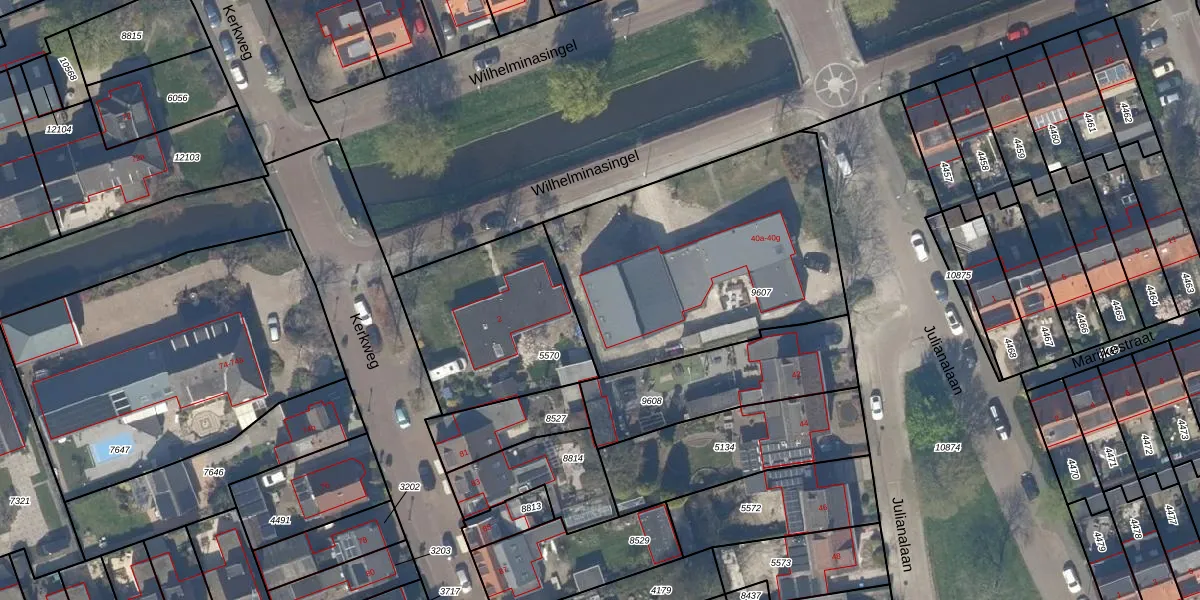 Het perceel waarop Julianalaan 40-e staat heeft een oppervlakte van 1349 m². Dit is een zeer groot perceel. De perceeloppervlakte wordt geregistreerd door het Kadaster. Gedetailleerde informatie over de maten van dit perceel kunt u vinden in het rapport Kadastrale kaart met maatvoering van Julianalaan 40-e.