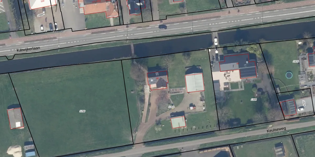 Katwijkerlaan 60 is gelegen op kadastraal perceel PAK00B1393. Deze kadastrale aanduiding is uniek en wordt gebruikt door het Kadaster om eigendomsrechten en andere zakelijke rechten vast te leggen. Het perceel maakt onderdeel uit van de kadastrale gemeente Pijnacker.