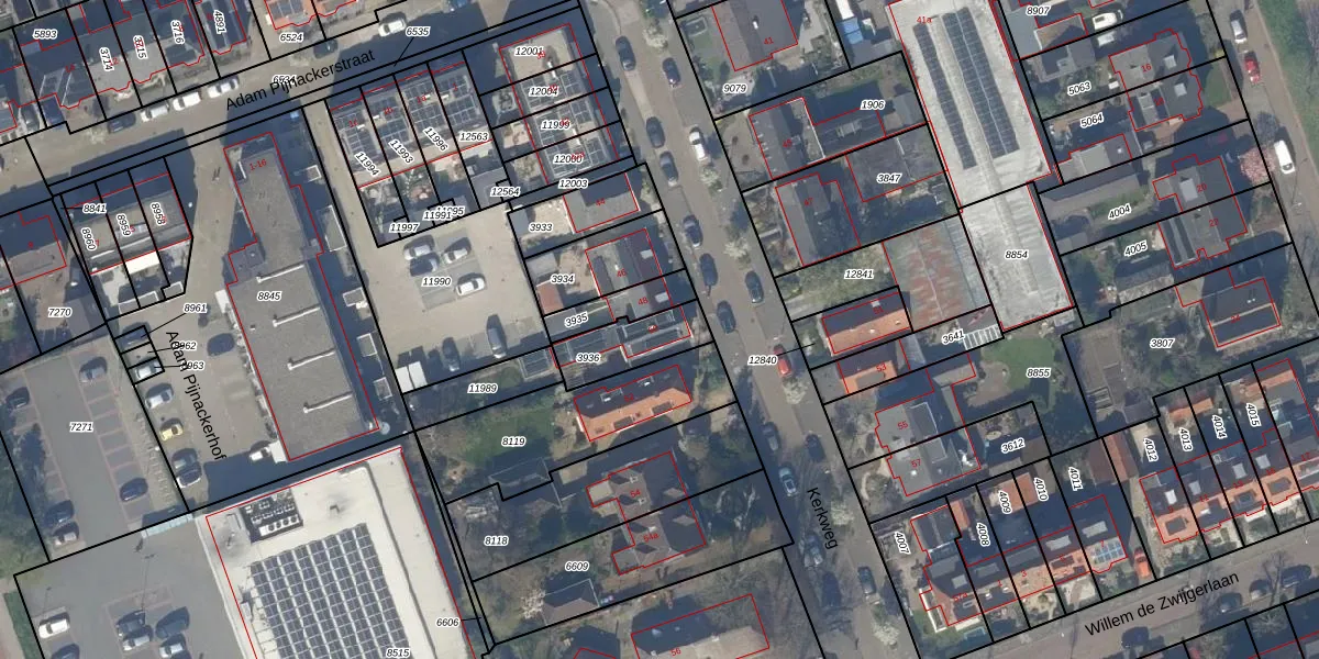 Gebruik de zoekbalk of klik op een perceel voor informatie over de adressen binnen dit perceel.
