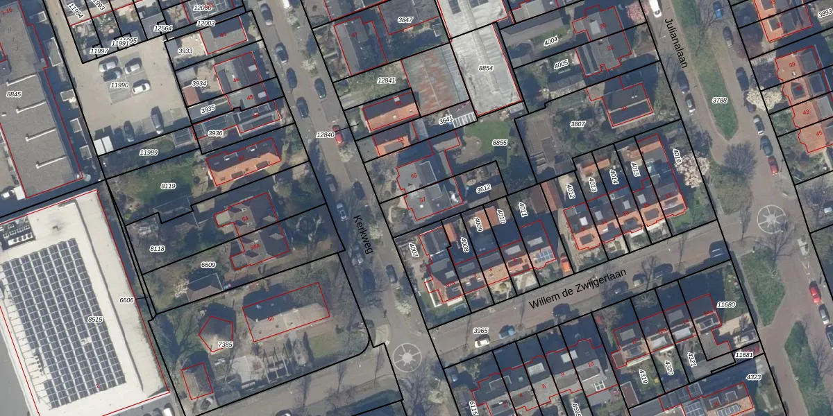 Kerkweg 57 is gelegen op kadastraal perceel PAK00C3612. Deze kadastrale aanduiding is uniek en wordt gebruikt door het Kadaster om eigendomsrechten en andere zakelijke rechten vast te leggen. Het perceel maakt onderdeel uit van de kadastrale gemeente Pijnacker.