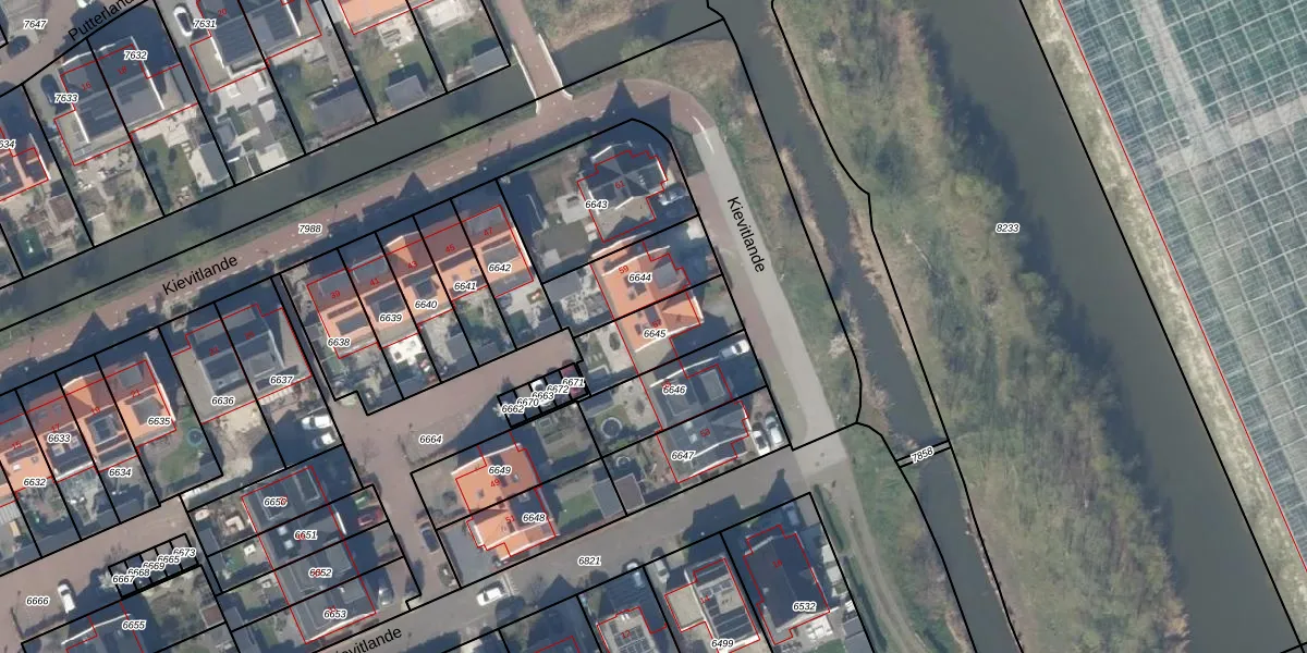Kievitlande 57 is gelegen op kadastraal perceel PAK00B6645. Deze kadastrale aanduiding is uniek en wordt gebruikt door het Kadaster om eigendomsrechten en andere zakelijke rechten vast te leggen. Het perceel maakt onderdeel uit van de kadastrale gemeente Pijnacker.