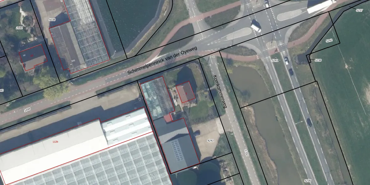 Komkommerweg 2 is gelegen op kadastraal perceel PAK00G4241. Deze kadastrale aanduiding is uniek en wordt gebruikt door het Kadaster om eigendomsrechten en andere zakelijke rechten vast te leggen. Het perceel maakt onderdeel uit van de kadastrale gemeente Pijnacker.