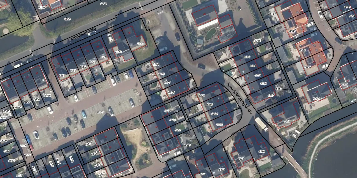 Kwartelkoninglande 8 is gelegen op kadastraal perceel PAK00B8277. Deze kadastrale aanduiding is uniek en wordt gebruikt door het Kadaster om eigendomsrechten en andere zakelijke rechten vast te leggen. Het perceel maakt onderdeel uit van de kadastrale gemeente Pijnacker.