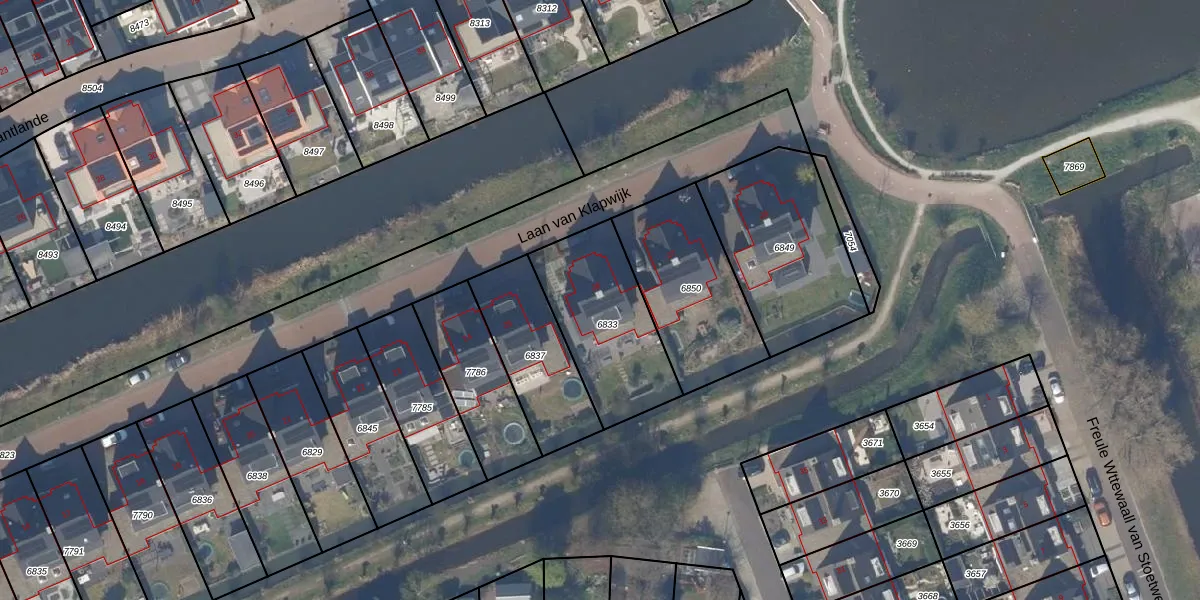 Gebruik de zoekbalk of klik op een perceel voor informatie over de adressen binnen dit perceel.