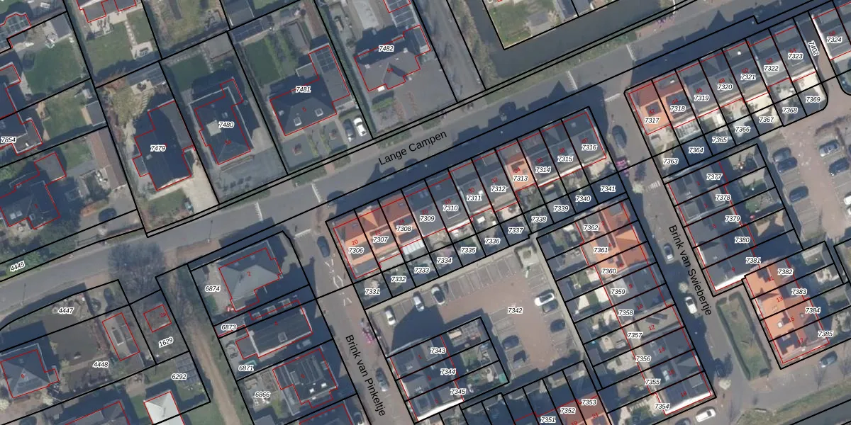 Gebruik de zoekbalk of klik op een perceel voor informatie over de adressen binnen dit perceel.