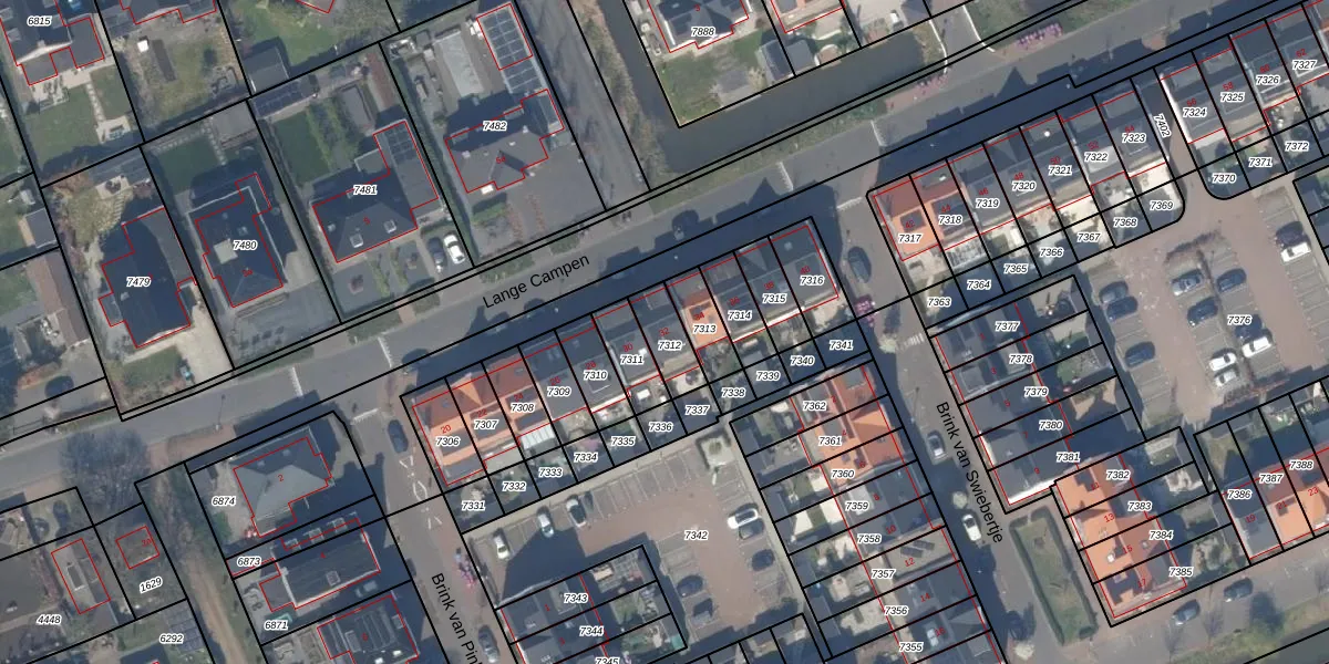 Lange Campen 32 is gelegen op kadastraal perceel PAK00B7312. Deze kadastrale aanduiding is uniek en wordt gebruikt door het Kadaster om eigendomsrechten en andere zakelijke rechten vast te leggen. Het perceel maakt onderdeel uit van de kadastrale gemeente Pijnacker.