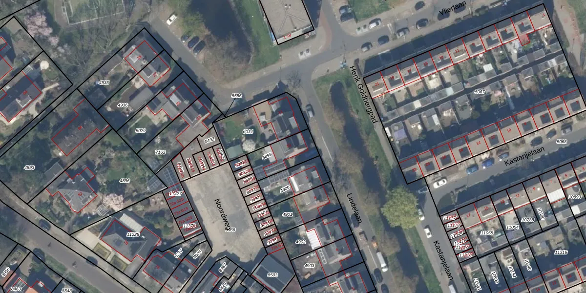 Gebruik de zoekbalk of klik op een perceel voor informatie over de adressen binnen dit perceel.
