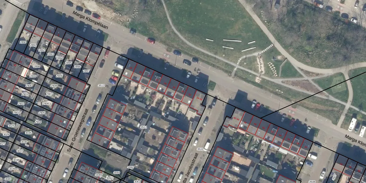 Marga Klompélaan 30 is gelegen op kadastraal perceel PAK00B3511. Deze kadastrale aanduiding is uniek en wordt gebruikt door het Kadaster om eigendomsrechten en andere zakelijke rechten vast te leggen. Het perceel maakt onderdeel uit van de kadastrale gemeente Pijnacker.
