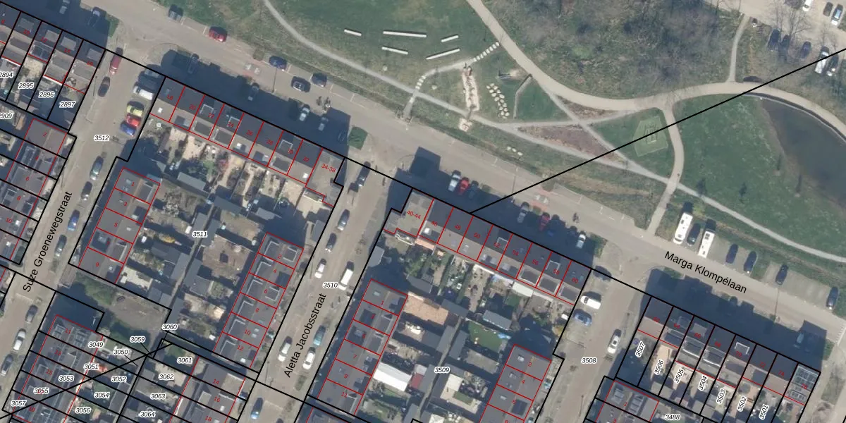 Marga Klompélaan 44 is gelegen op kadastraal perceel PAK00B3509. Deze kadastrale aanduiding is uniek en wordt gebruikt door het Kadaster om eigendomsrechten en andere zakelijke rechten vast te leggen. Het perceel maakt onderdeel uit van de kadastrale gemeente Pijnacker.