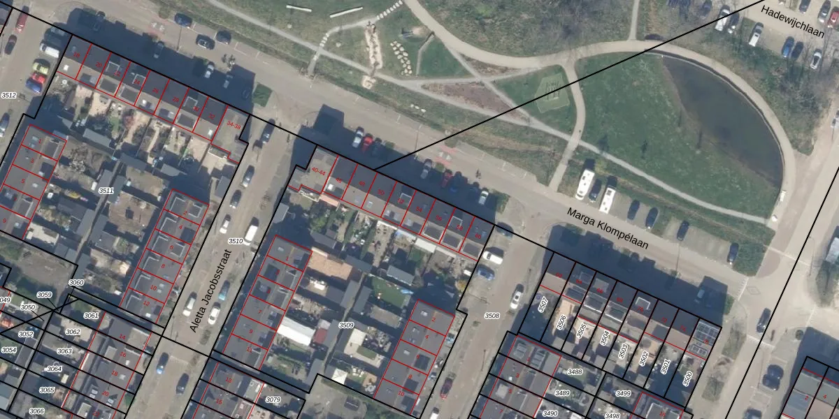 Marga Klompélaan 54 is gelegen op kadastraal perceel PAK00B3509. Deze kadastrale aanduiding is uniek en wordt gebruikt door het Kadaster om eigendomsrechten en andere zakelijke rechten vast te leggen. Het perceel maakt onderdeel uit van de kadastrale gemeente Pijnacker.