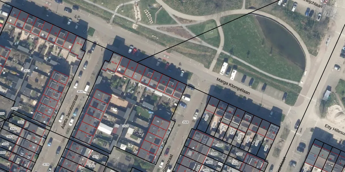 Marga Klompélaan 58 is gelegen op kadastraal perceel PAK00B3509. Deze kadastrale aanduiding is uniek en wordt gebruikt door het Kadaster om eigendomsrechten en andere zakelijke rechten vast te leggen. Het perceel maakt onderdeel uit van de kadastrale gemeente Pijnacker.