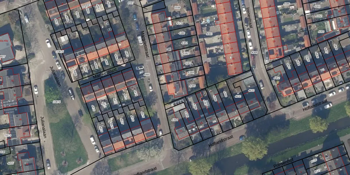 Gebruik de zoekbalk of klik op een perceel voor informatie over de adressen binnen dit perceel.