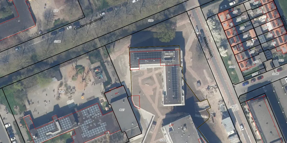 Het perceel waarop Meidoornlaan 203 staat heeft een oppervlakte van 6153 m². Dit is een zeer groot perceel. De perceeloppervlakte wordt geregistreerd door het Kadaster. Gedetailleerde informatie over de maten van dit perceel kunt u vinden in het rapport Kadastrale kaart met maatvoering van Meidoornlaan 203.