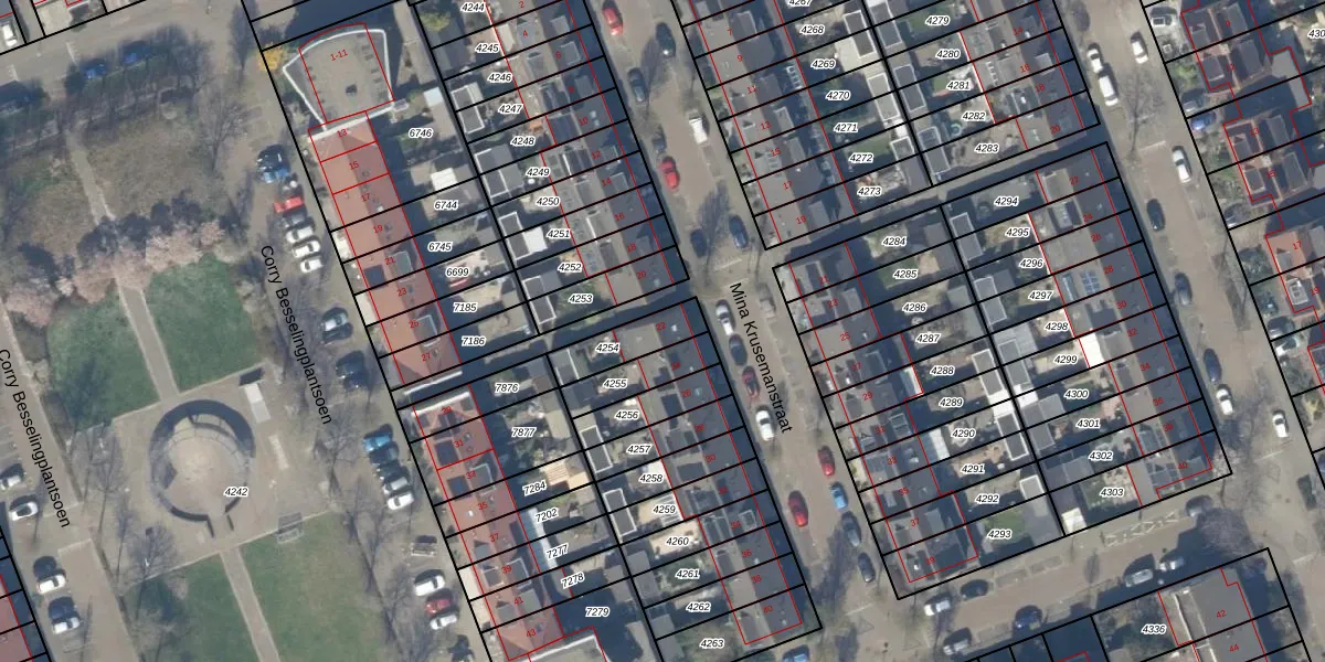 Het adres is gelegen op perceel 4254 in de sectie B en de kadastrale gemeente Pijnacker. De kadastrale aanduiding is aldus PAK00-B-4254. Het perceel is 131 m² groot. Dat is kleiner dan de gemiddelde perceeloppervlakte in Pijnacker, dat op 1796,62 m² ligt. Het grootste perceel in de kadastrale gemeente is 20,5 ha. Het kleinste perceel heeft een oppervlakte van 0 m². Er zijn geen andere adressen aanwezig op het perceel. De laatste wijziging in het de Basisregistratie Kadaster (BRK) was op 08-04-2019.