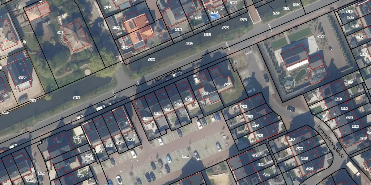 Monnikenweg 34 is gelegen op kadastraal perceel PAK00B8271. Deze kadastrale aanduiding is uniek en wordt gebruikt door het Kadaster om eigendomsrechten en andere zakelijke rechten vast te leggen. Het perceel maakt onderdeel uit van de kadastrale gemeente Pijnacker.