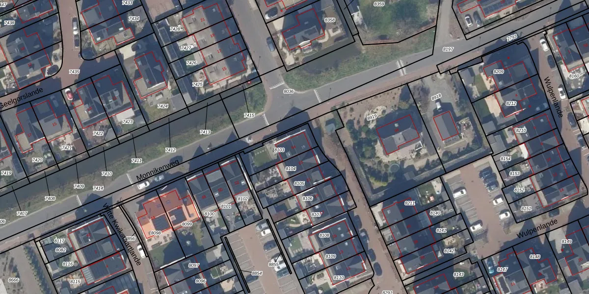 Monnikenweg 54 is gelegen op kadastraal perceel PAK00B8103. Deze kadastrale aanduiding is uniek en wordt gebruikt door het Kadaster om eigendomsrechten en andere zakelijke rechten vast te leggen. Het perceel maakt onderdeel uit van de kadastrale gemeente Pijnacker.