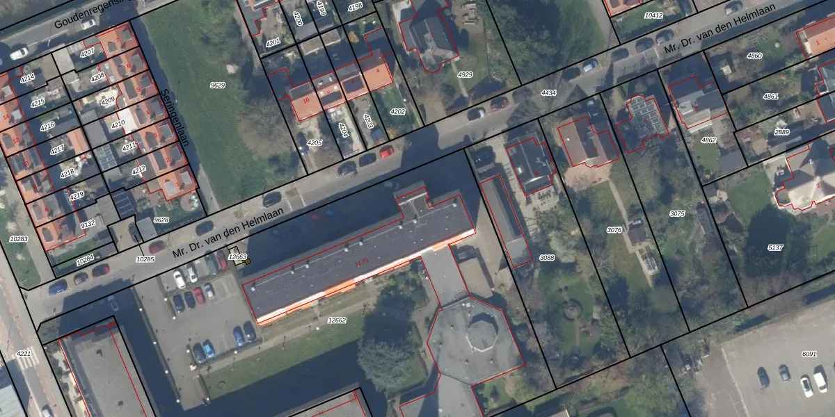 Mr. Dr. van den Helmlaan 11 is gelegen op kadastraal perceel PAK00C12662. Deze kadastrale aanduiding is uniek en wordt gebruikt door het Kadaster om eigendomsrechten en andere zakelijke rechten vast te leggen. Het perceel maakt onderdeel uit van de kadastrale gemeente Pijnacker.