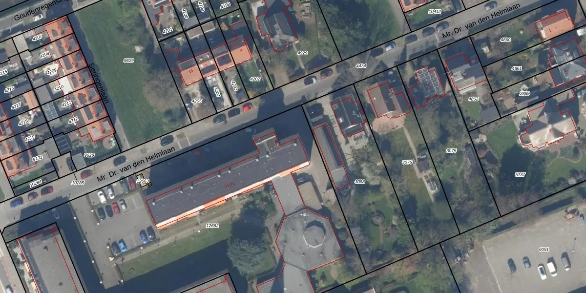 Mr. Dr. van den Helmlaan 13 is gelegen op kadastraal perceel PAK00C12662. Deze kadastrale aanduiding is uniek en wordt gebruikt door het Kadaster om eigendomsrechten en andere zakelijke rechten vast te leggen. Het perceel maakt onderdeel uit van de kadastrale gemeente Pijnacker.