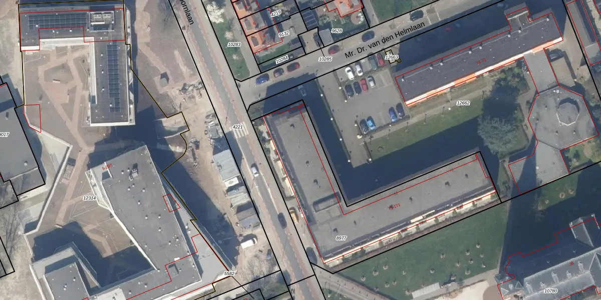 Het perceel waarop Mr. Dr. van den Helmlaan 133 staat heeft een oppervlakte van 1913 m². Dit is een zeer groot perceel. De perceeloppervlakte wordt geregistreerd door het Kadaster. Gedetailleerde informatie over de maten van dit perceel kunt u vinden in het rapport Kadastrale kaart met maatvoering van Mr. Dr. van den Helmlaan 133.