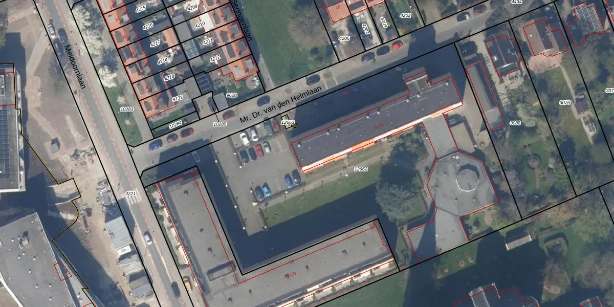 Mr. Dr. van den Helmlaan 55 is gelegen op kadastraal perceel PAK00C12662. Deze kadastrale aanduiding is uniek en wordt gebruikt door het Kadaster om eigendomsrechten en andere zakelijke rechten vast te leggen. Het perceel maakt onderdeel uit van de kadastrale gemeente Pijnacker.