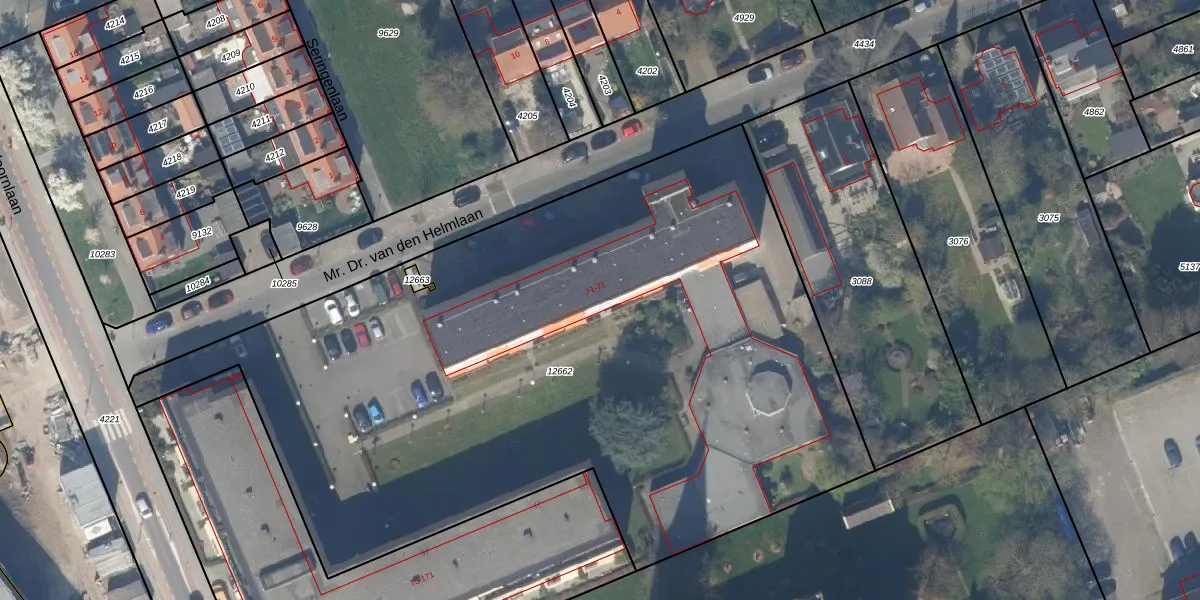 Mr. Dr. van den Helmlaan 67 is gelegen op kadastraal perceel PAK00C12662. Deze kadastrale aanduiding is uniek en wordt gebruikt door het Kadaster om eigendomsrechten en andere zakelijke rechten vast te leggen. Het perceel maakt onderdeel uit van de kadastrale gemeente Pijnacker.