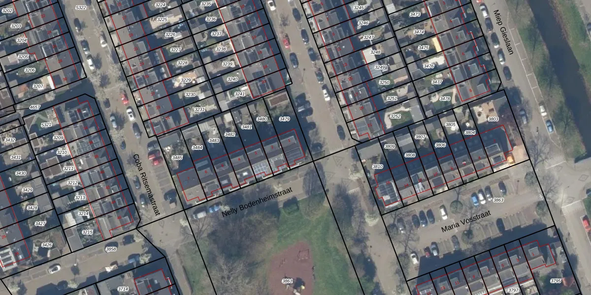 Nelly Bodenheimstraat 1 is gelegen op kadastraal perceel PAK00B3479. Deze kadastrale aanduiding is uniek en wordt gebruikt door het Kadaster om eigendomsrechten en andere zakelijke rechten vast te leggen. Het perceel maakt onderdeel uit van de kadastrale gemeente Pijnacker.