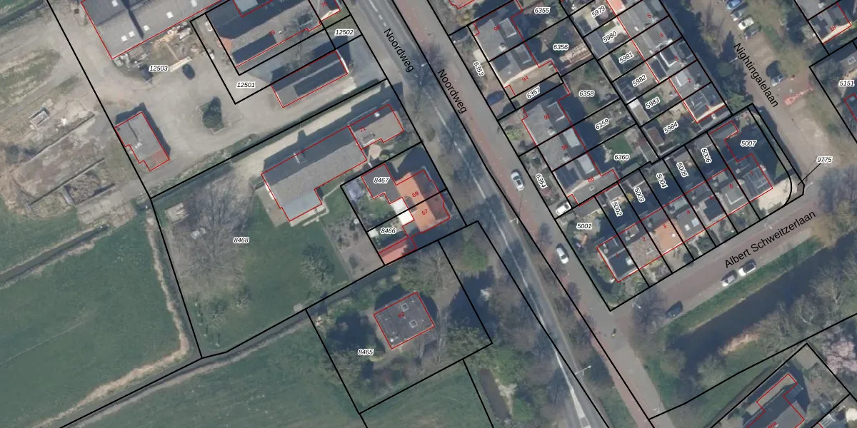 Noordweg 67 is gelegen op kadastraal perceel PAK00C8466. Deze kadastrale aanduiding is uniek en wordt gebruikt door het Kadaster om eigendomsrechten en andere zakelijke rechten vast te leggen. Het perceel maakt onderdeel uit van de kadastrale gemeente Pijnacker.