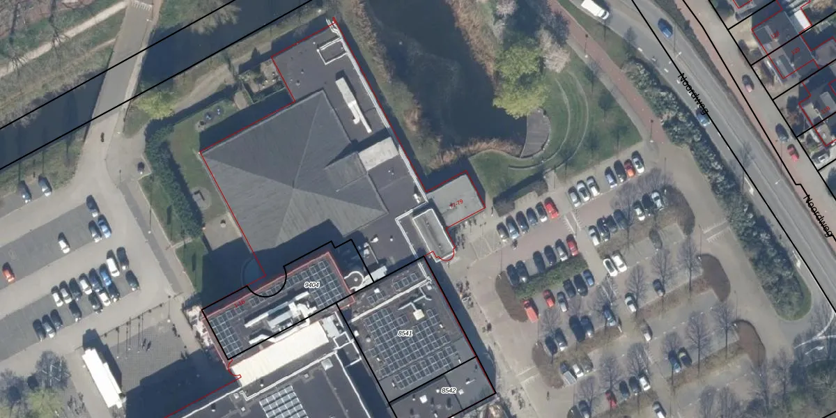 Het perceel waarop Noordweg 79 staat heeft een oppervlakte van 4,9 ha. Dit is een zeer groot perceel. De perceeloppervlakte wordt geregistreerd door het Kadaster. Gedetailleerde informatie over de maten van dit perceel kunt u vinden in het rapport Kadastrale kaart met maatvoering van Noordweg 79.