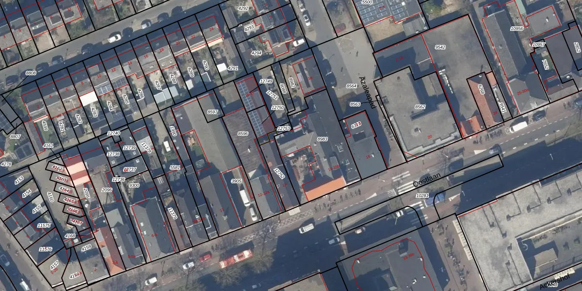 Oostlaan 14 is gelegen op kadastraal perceel PAK00C8983. Deze kadastrale aanduiding is uniek en wordt gebruikt door het Kadaster om eigendomsrechten en andere zakelijke rechten vast te leggen. Het perceel maakt onderdeel uit van de kadastrale gemeente Pijnacker.