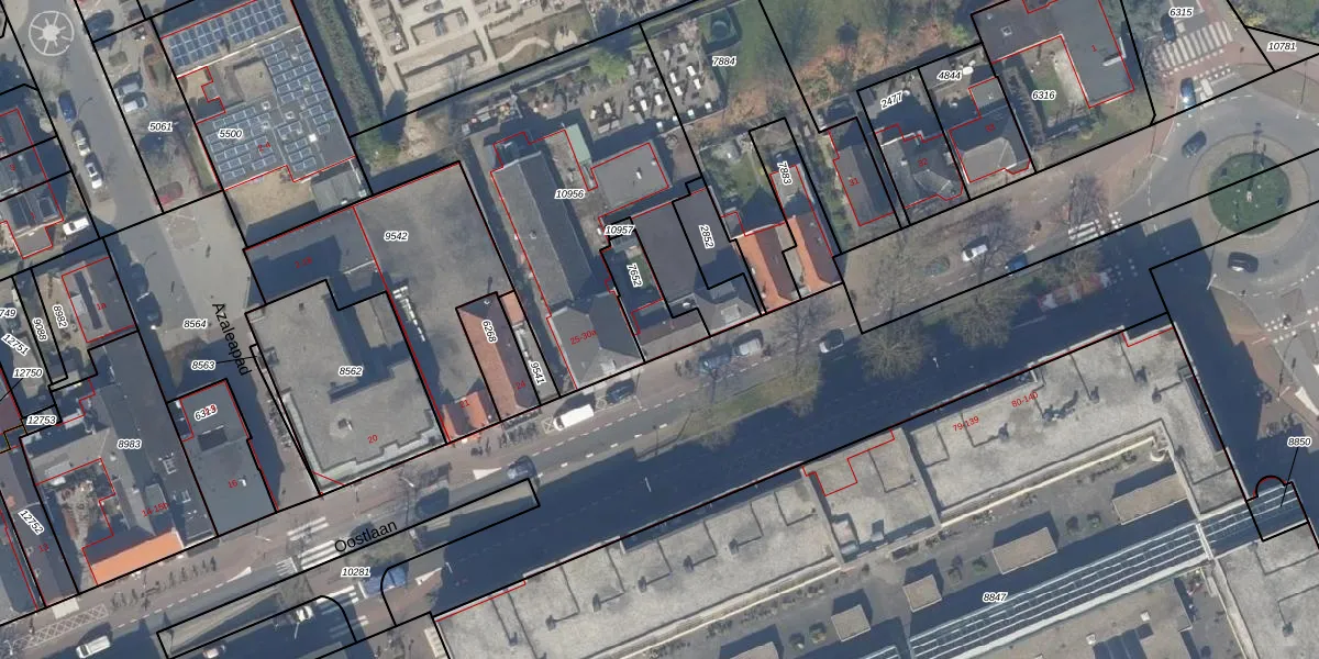 Gebruik de zoekbalk of klik op een perceel voor informatie over de adressen binnen dit perceel.