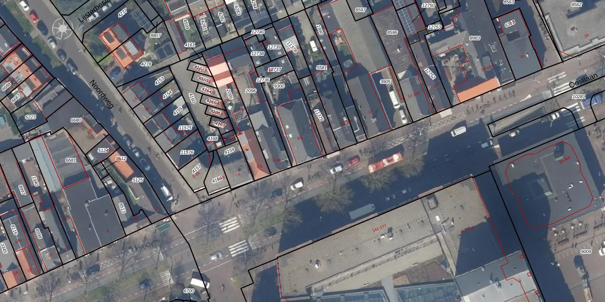 Oostlaan 6 is gelegen op kadastraal perceel PAK00C9300. Deze kadastrale aanduiding is uniek en wordt gebruikt door het Kadaster om eigendomsrechten en andere zakelijke rechten vast te leggen. Het perceel maakt onderdeel uit van de kadastrale gemeente Pijnacker.