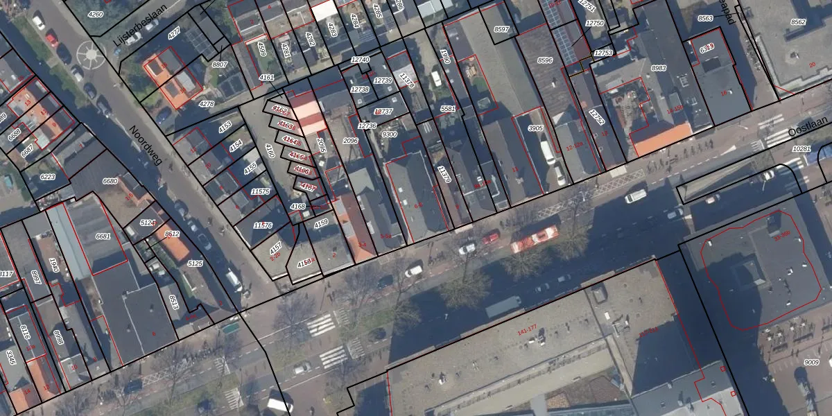 Het perceel waarop Oostlaan 6-a staat heeft een oppervlakte van 348 m². Dit is een groot perceel. De perceeloppervlakte wordt geregistreerd door het Kadaster. Gedetailleerde informatie over de maten van dit perceel kunt u vinden in het rapport Kadastrale kaart met maatvoering van Oostlaan 6-a.