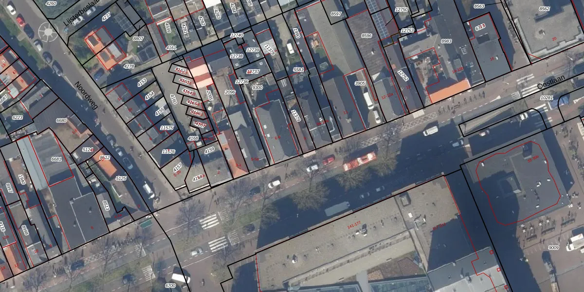 Oostlaan 7 is gelegen op kadastraal perceel PAK00C9300. Deze kadastrale aanduiding is uniek en wordt gebruikt door het Kadaster om eigendomsrechten en andere zakelijke rechten vast te leggen. Het perceel maakt onderdeel uit van de kadastrale gemeente Pijnacker.