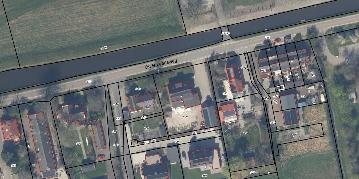 Het perceel waarop Oude Leedeweg 187 staat heeft een oppervlakte van 1090 m². Dit is een zeer groot perceel. De perceeloppervlakte wordt geregistreerd door het Kadaster. Gedetailleerde informatie over de maten van dit perceel kunt u vinden in het rapport Kadastrale kaart met maatvoering van Oude Leedeweg 187.