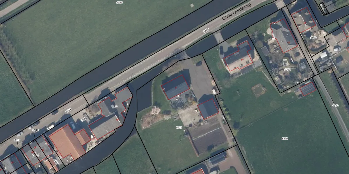 Oude Leedeweg 77 is gelegen op kadastraal perceel PAK00C9921. Deze kadastrale aanduiding is uniek en wordt gebruikt door het Kadaster om eigendomsrechten en andere zakelijke rechten vast te leggen. Het perceel maakt onderdeel uit van de kadastrale gemeente Pijnacker.
