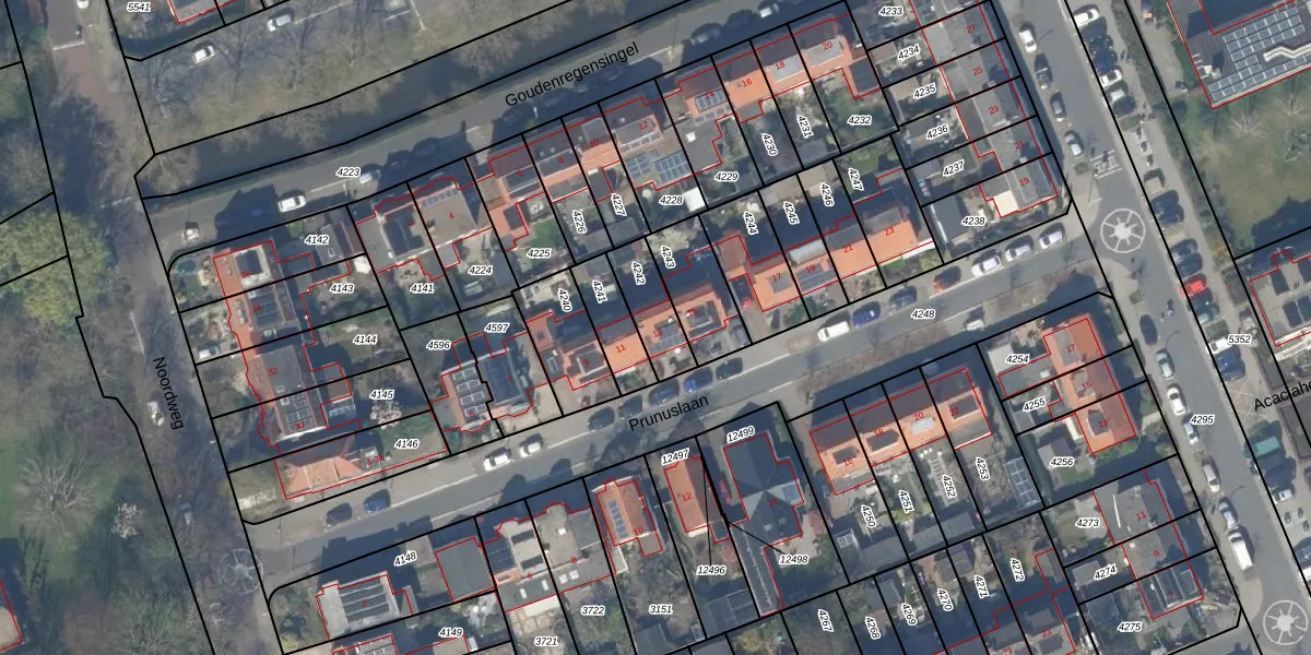 Gebruik de zoekbalk of klik op een perceel voor informatie over de adressen binnen dit perceel.