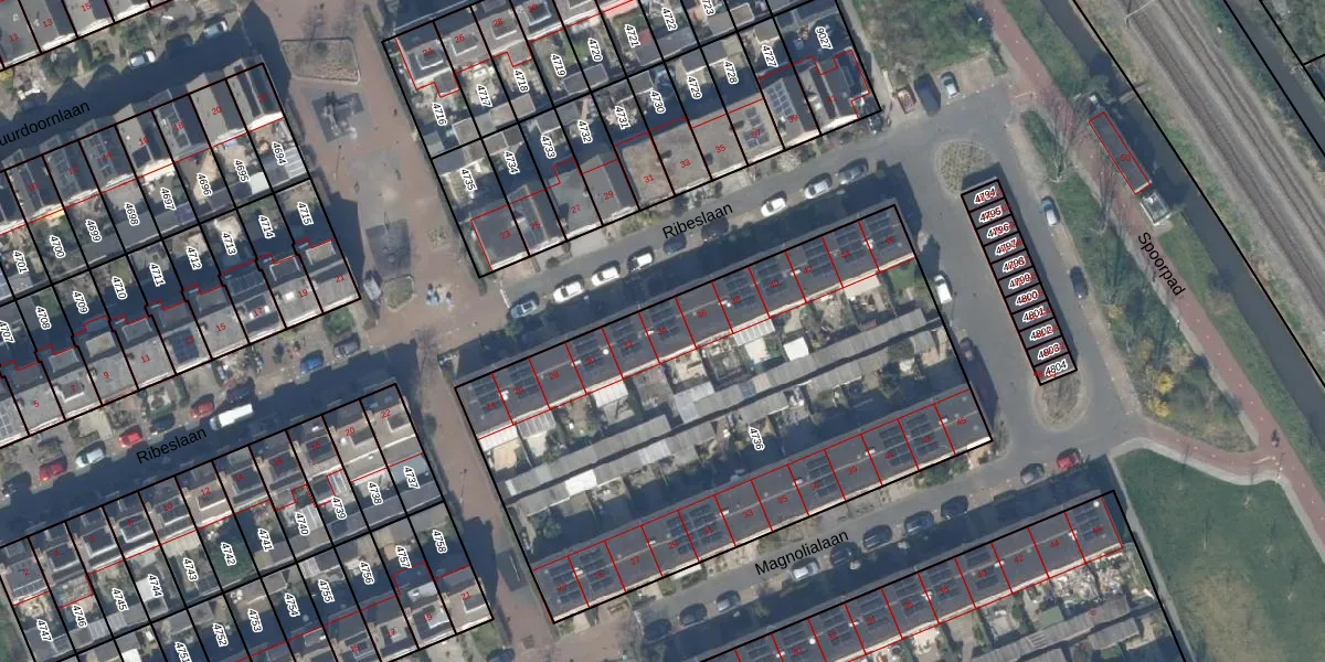 Het perceel waarop Ribeslaan 34 staat heeft een oppervlakte van 2774 m². Dit is een zeer groot perceel. De perceeloppervlakte wordt geregistreerd door het Kadaster. Gedetailleerde informatie over de maten van dit perceel kunt u vinden in het rapport Kadastrale kaart met maatvoering van Ribeslaan 34.