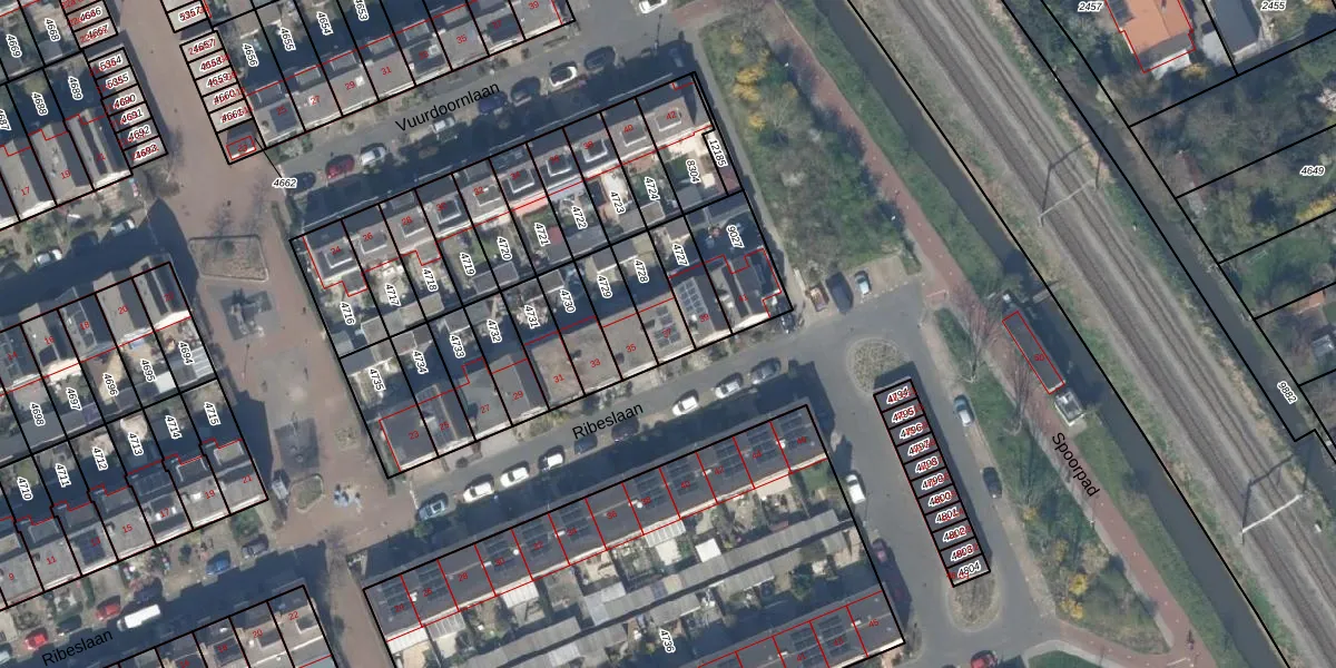 Ribeslaan 37 is gelegen op kadastraal perceel PAK00C4728. Deze kadastrale aanduiding is uniek en wordt gebruikt door het Kadaster om eigendomsrechten en andere zakelijke rechten vast te leggen. Het perceel maakt onderdeel uit van de kadastrale gemeente Pijnacker.