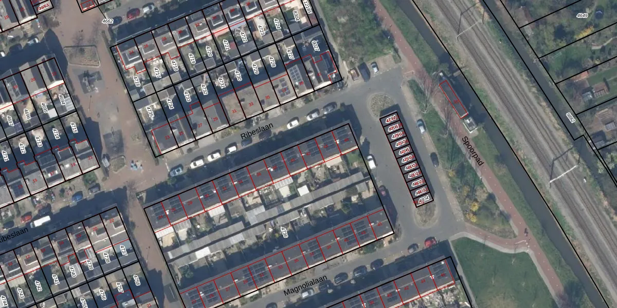 Ribeslaan 42 is gelegen op kadastraal perceel PAK00C4736. Deze kadastrale aanduiding is uniek en wordt gebruikt door het Kadaster om eigendomsrechten en andere zakelijke rechten vast te leggen. Het perceel maakt onderdeel uit van de kadastrale gemeente Pijnacker.