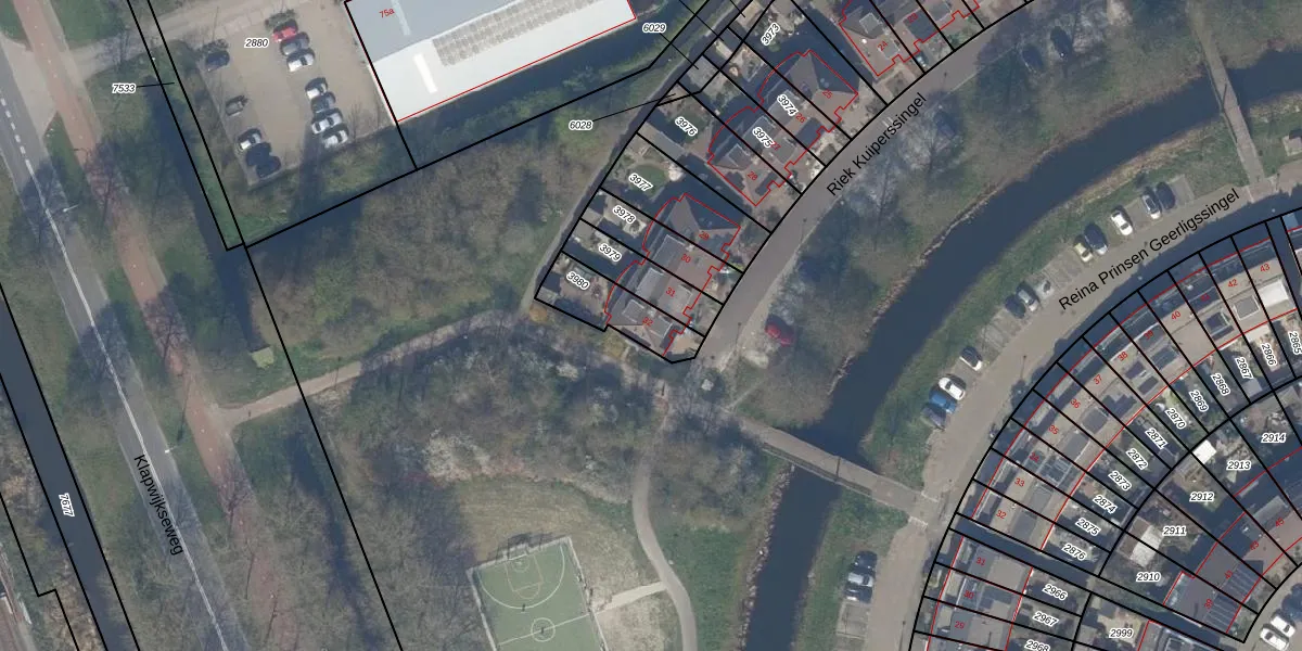Riek Kuiperssingel 32 is gelegen op kadastraal perceel PAK00B3980. Deze kadastrale aanduiding is uniek en wordt gebruikt door het Kadaster om eigendomsrechten en andere zakelijke rechten vast te leggen. Het perceel maakt onderdeel uit van de kadastrale gemeente Pijnacker.