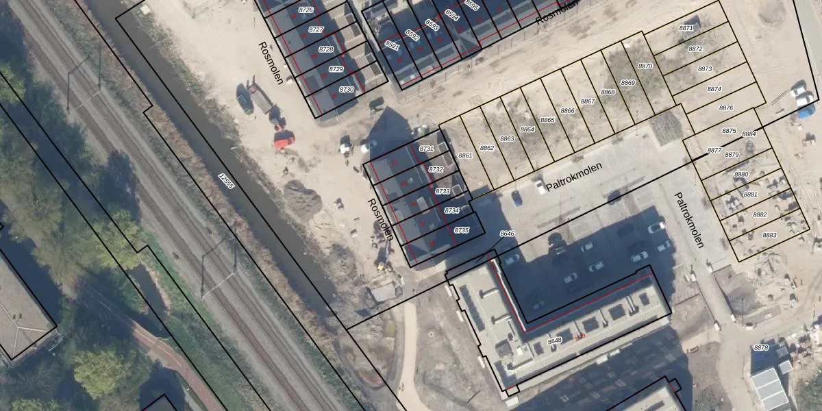 Het perceel waarop Rosmolen 25 staat heeft een oppervlakte van 112 m². Dit is een middelgroot perceel. De perceeloppervlakte wordt geregistreerd door het Kadaster. Gedetailleerde informatie over de maten van dit perceel kunt u vinden in het rapport Kadastrale kaart met maatvoering van Rosmolen 25.