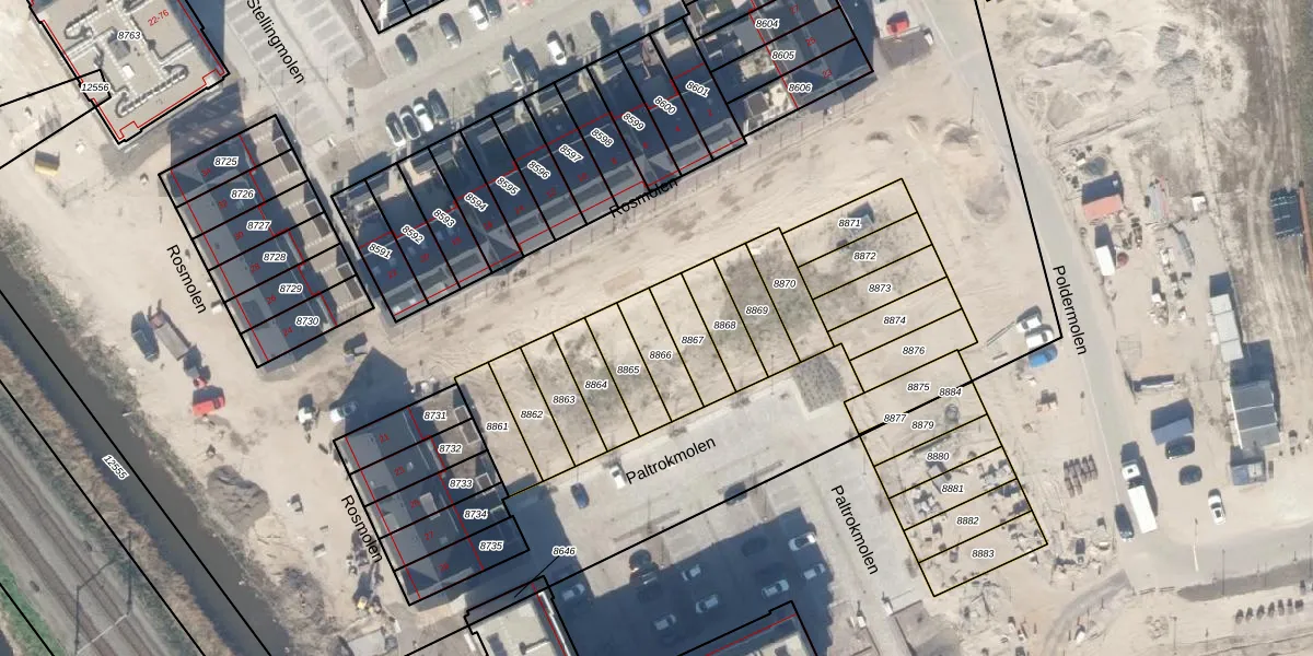 Het perceel waarop Rosmolen 9 staat heeft een oppervlakte van 107 m². Dit is een middelgroot perceel. De perceeloppervlakte wordt geregistreerd door het Kadaster. Gedetailleerde informatie over de maten van dit perceel kunt u vinden in het rapport Kadastrale kaart met maatvoering van Rosmolen 9.