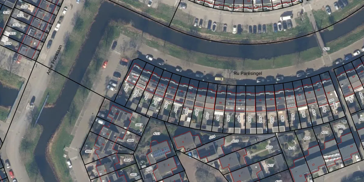Ru Parésingel 30 is gelegen op kadastraal perceel PAK00B4160. Deze kadastrale aanduiding is uniek en wordt gebruikt door het Kadaster om eigendomsrechten en andere zakelijke rechten vast te leggen. Het perceel maakt onderdeel uit van de kadastrale gemeente Pijnacker.