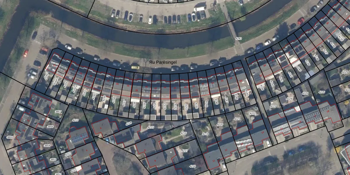 Ru Parésingel 46 is gelegen op kadastraal perceel PAK00B4152. Deze kadastrale aanduiding is uniek en wordt gebruikt door het Kadaster om eigendomsrechten en andere zakelijke rechten vast te leggen. Het perceel maakt onderdeel uit van de kadastrale gemeente Pijnacker.